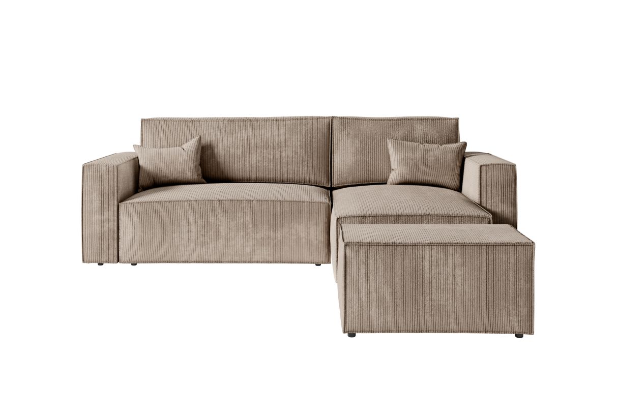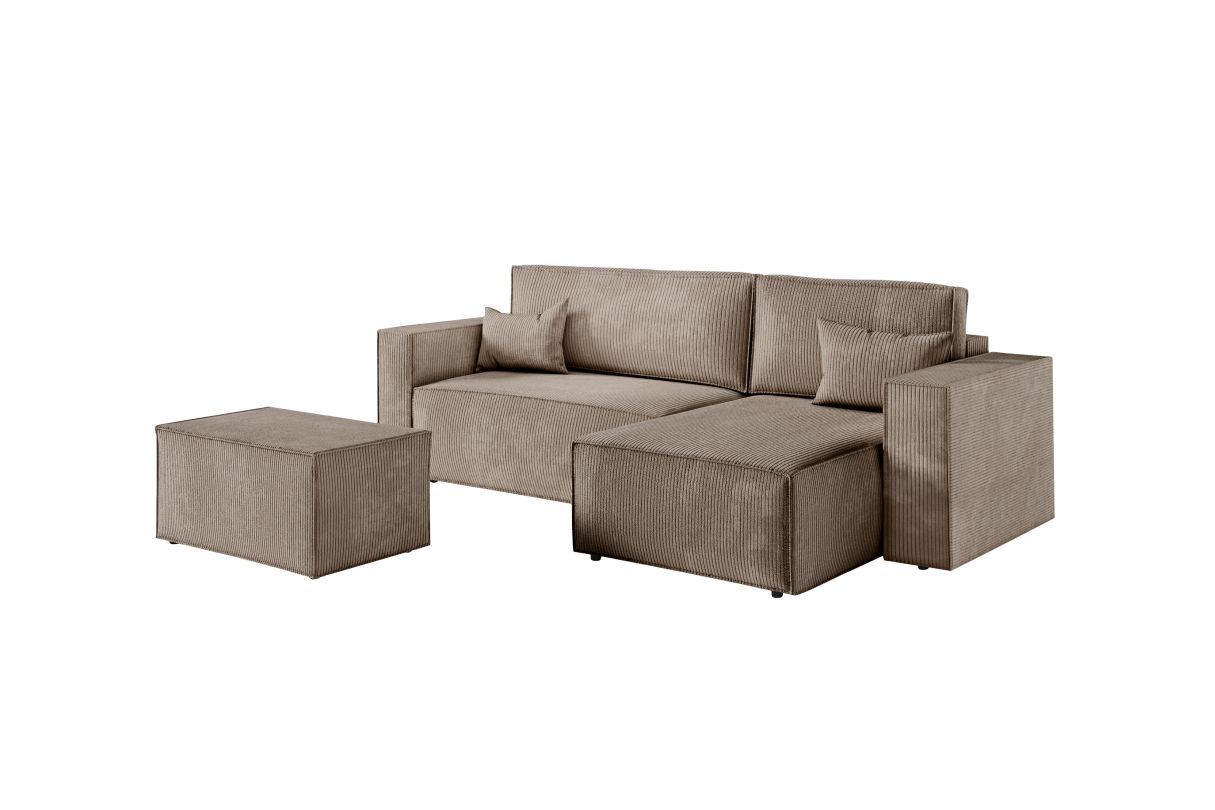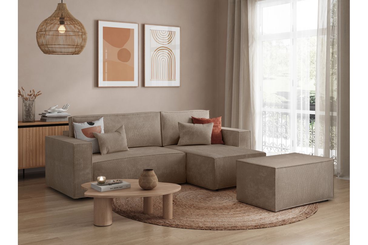 PACK - CLARISSE - Canapé d'angle convertible réversible avec pouf en velours côtelé - Taupe