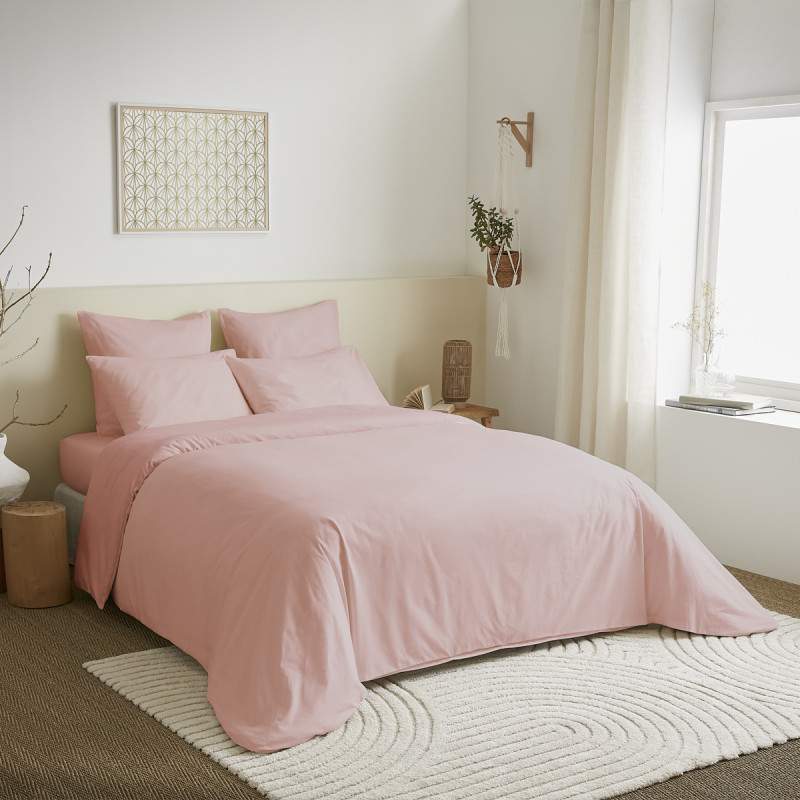 Pack complet 6 pièces unicolore Rose housse de couette pour lit 140 x 190 cm