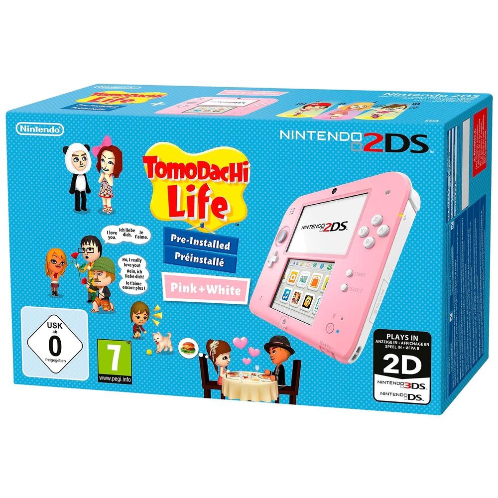 Pack console Nintendo 2DS (blanc & rose) & tomodachi life (préinstallé) (3DS)