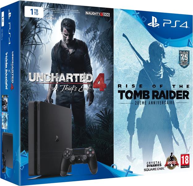 pack console playstation 4 slim (1To) & Uncharted 4 & Rise of the Tomb Raider - Black (PS4)