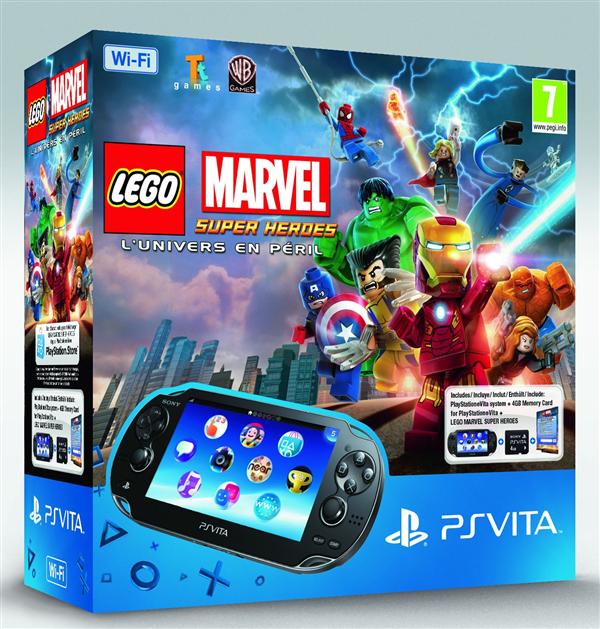 LEGO Marvel Super Heroes propose un scénario original mettant en scène la grande famille Marvel. Les joueurs pourront incarner Iron Man, Spider Man, Hulk, Captain America, Wolverine et bien d'autres encore afin de tenter d'arrêter Loki ainsi qu'une foule d'autres Vilains Marvel, planifiant d'assembler une arme ultime pour contrôler la Terre. Les joueurs devront partir en quête de Comic Bricks à mesure qu'ils parcourent LEGO New York et visitent des lieux iconiques de l'univers Marvel comme la Tour Stark, l'Astéroïde M, une base Hydra abandonnée et le Manoir X. Le pack comprend 1 PS Vita WiFi, 1 Voucher Légo Marvel : Super Heroes & 1 Carte Mémoire 4 Go.