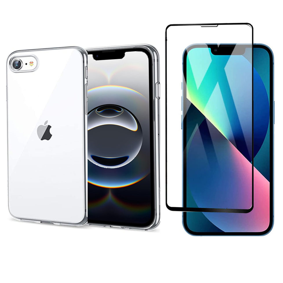Pack coque transparente en TPU et protection écran complet vitre full cover noir en verre trempé pour App
