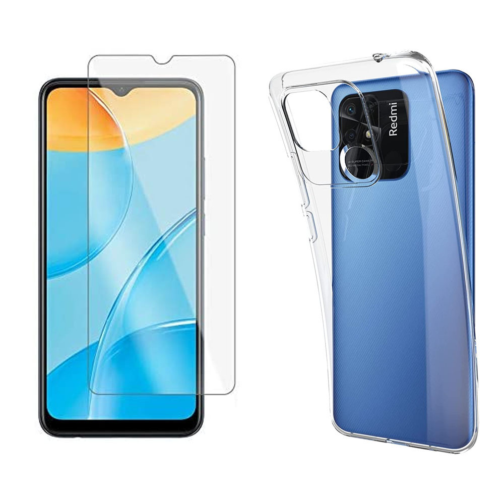 Ce pack regroupe une coque transparente en TPU ainsi qu'une protection écran vitre en verre trempé pour Xiaomi Redmi 10A 4G - XEPTIO