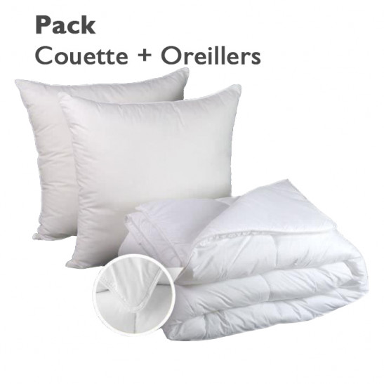 Pack Couette "Bien être" 220 x 240 cm pour lit 2 places + 2 Oreillers confort moelleux 60 x 60 cm