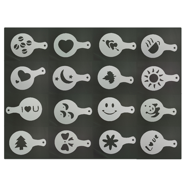 Pack de 16 pochoirs décoration pour tasse de café