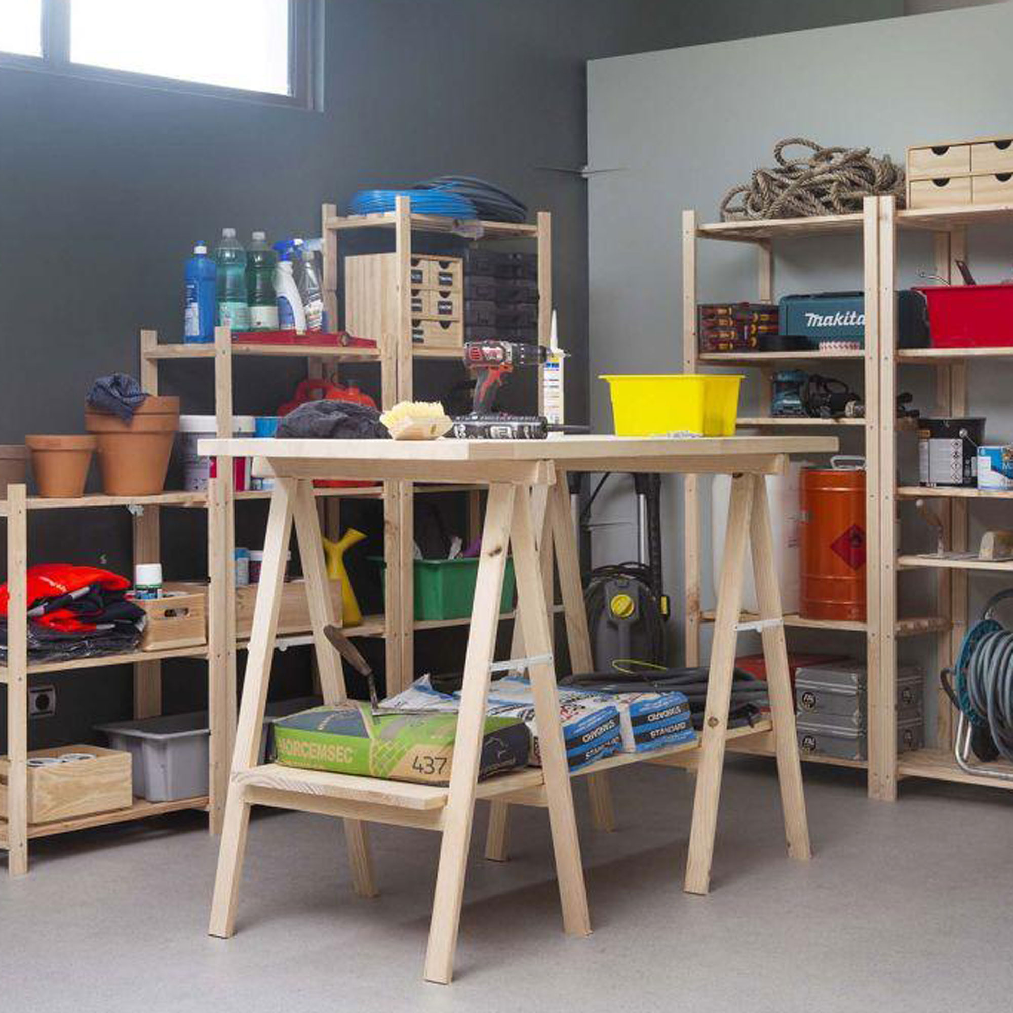 Chevalets pliants en bois Le chevalet pliant en bois est un outil indispensable pour les menuisiers, les bricoleurs et les professionnels de la construction. Conçu pour offrir une solution pratique et robuste, ce chevalet est idéal pour une grande variété de travaux tels que monter des planches, couper du bois, prendre des mesures précises et maintenir des matériaux lourds. Fabriqué en bois massif de haute qualité, ce chevalet garantit stabilité et durabilité, résistant aussi bien aux tâches quotidiennes qu'aux conditions de travail les plus exigeantes. Grâce à sa conception pliable, vous pouvez le monter et le démonter en quelques secondes, ce qui le rend facile à transporter et à ranger dans les petits espaces, comme les ateliers, les garages ou les véhicules de travail. Sa conception ergonomique et stable vous permet de couper du bois avec précision, d'assembler des meubles ou de maintenir de grandes pièces en toute sécurité. De plus, étant un produit léger et facile à transporter, il est idéal pour les professionnels qui ont besoin de déplacer leur équipement d'un endroit à un autre sans sacrifier la fonctionnalité. Il peut être utilisé individuellement ou par paires pour soutenir de grands panneaux, portes ou panneaux arrière, offrant ainsi une flexibilité dans tous les types de projets.