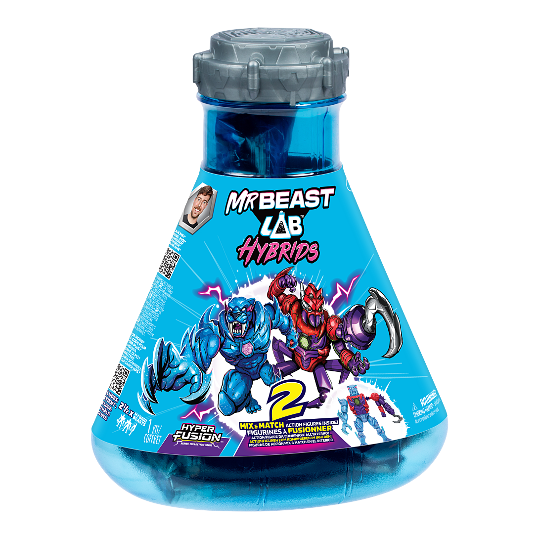 Ouvre ta fiole et découvre 2 figurines Mix & Match MrBeast Lab à fusionner. Collectionne les 2 fioles pour constituer le dragon doré ! + de 30 créatures à fusionner et à collectionner !