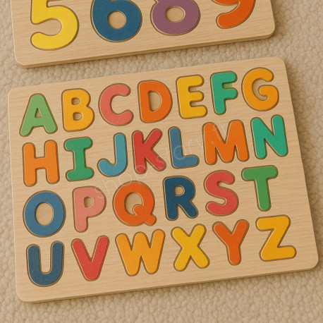 Contenu : 1 puzzle avec l'alphabet A-Z + 1 puzzle avec les chiffres 0-9.