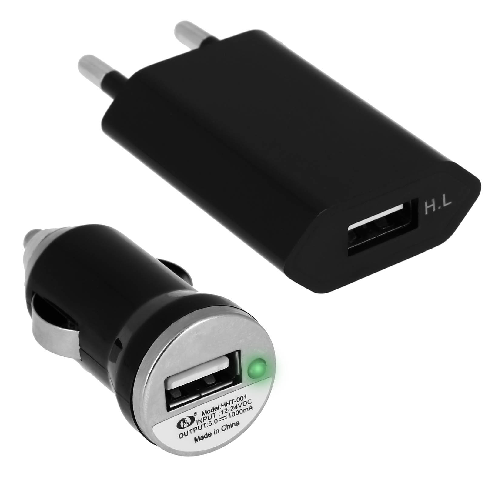 Pack de charge: Chargeur secteur 0.7A + Chargeur voiture 1A + Câble Micro-USB