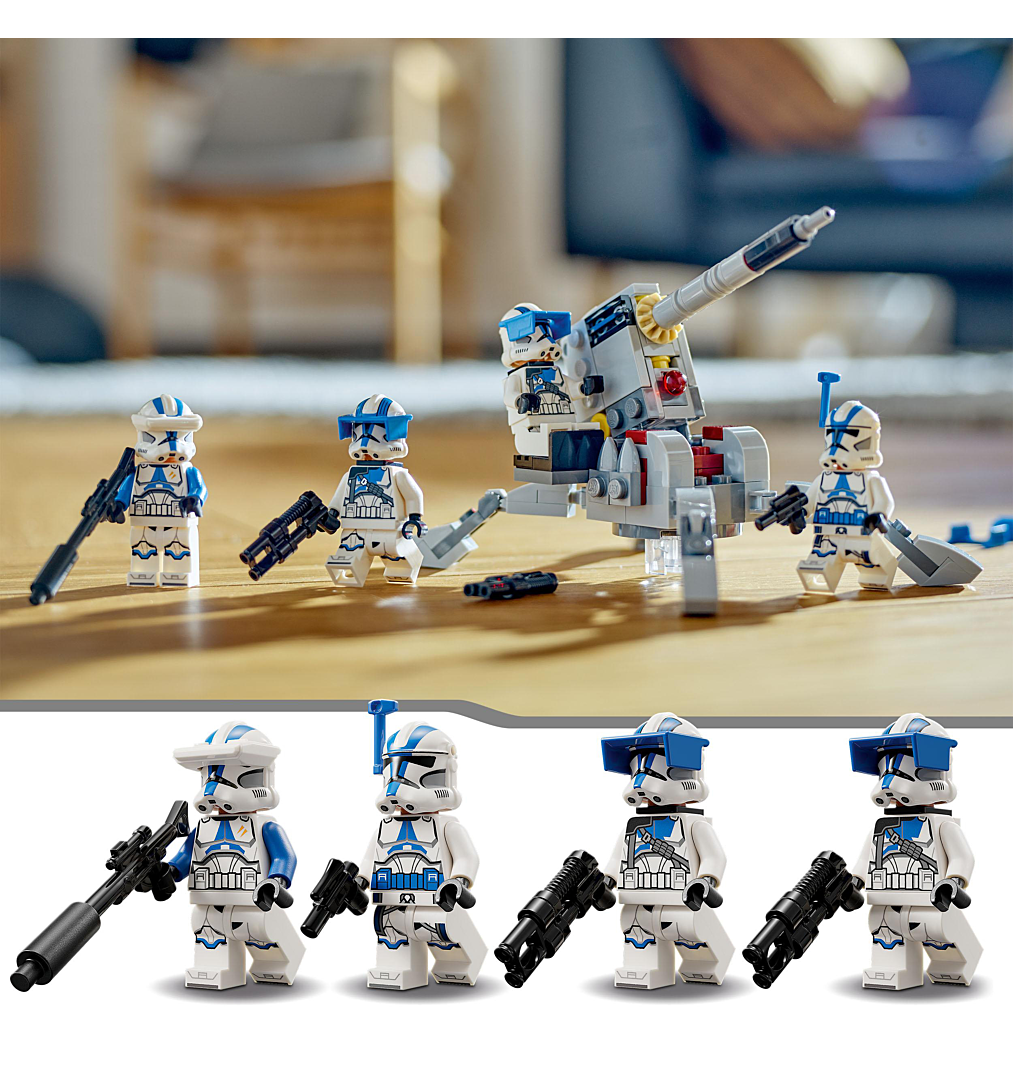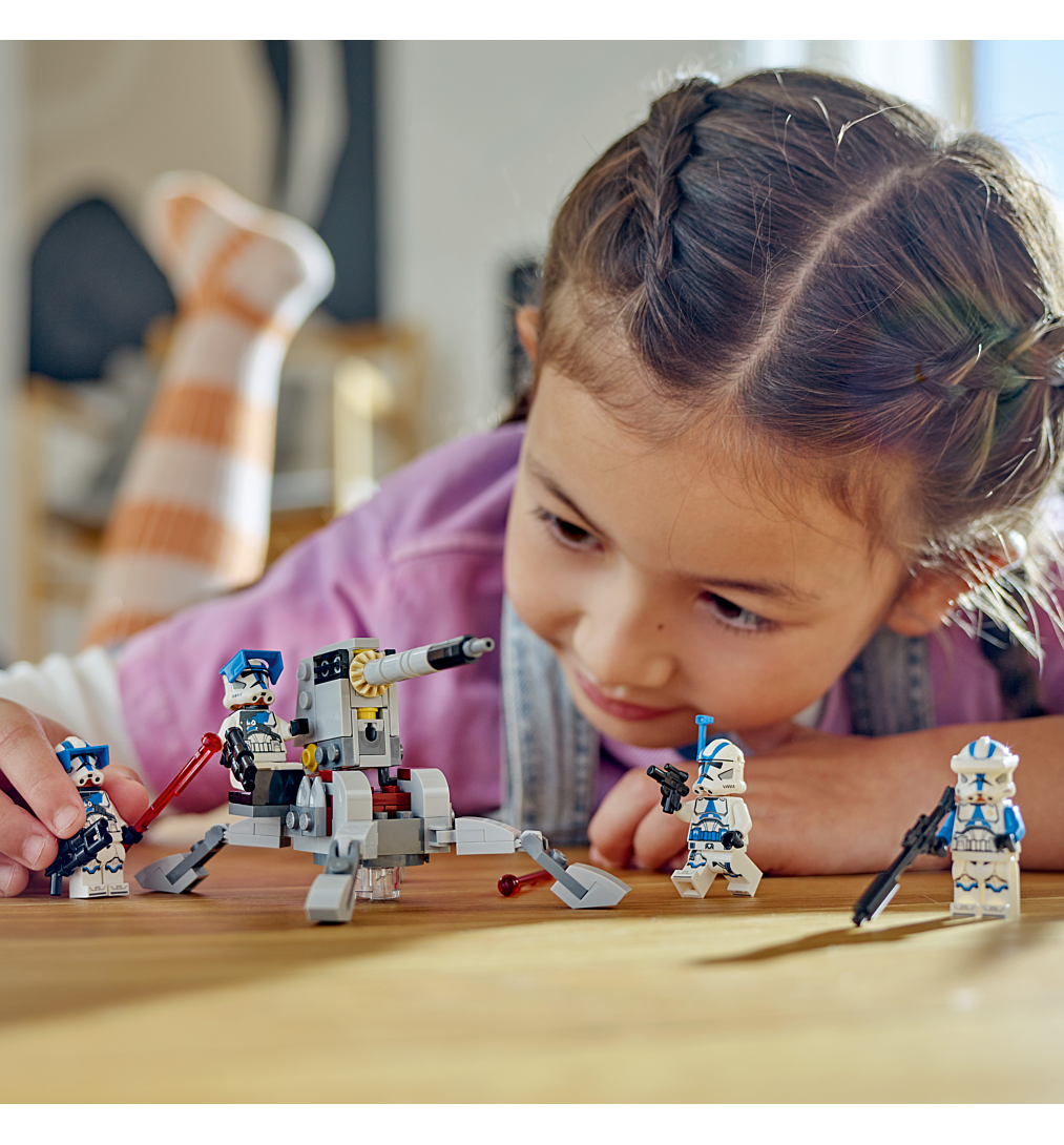 Plus produit Les enfants peuvent commander une unité de Clone Troopers de la 501ème légion avec ce set de combat LEGO® Star Wars, qui inclut 4 minifigurines LEGO et un canon anti-véhicules AV-7.