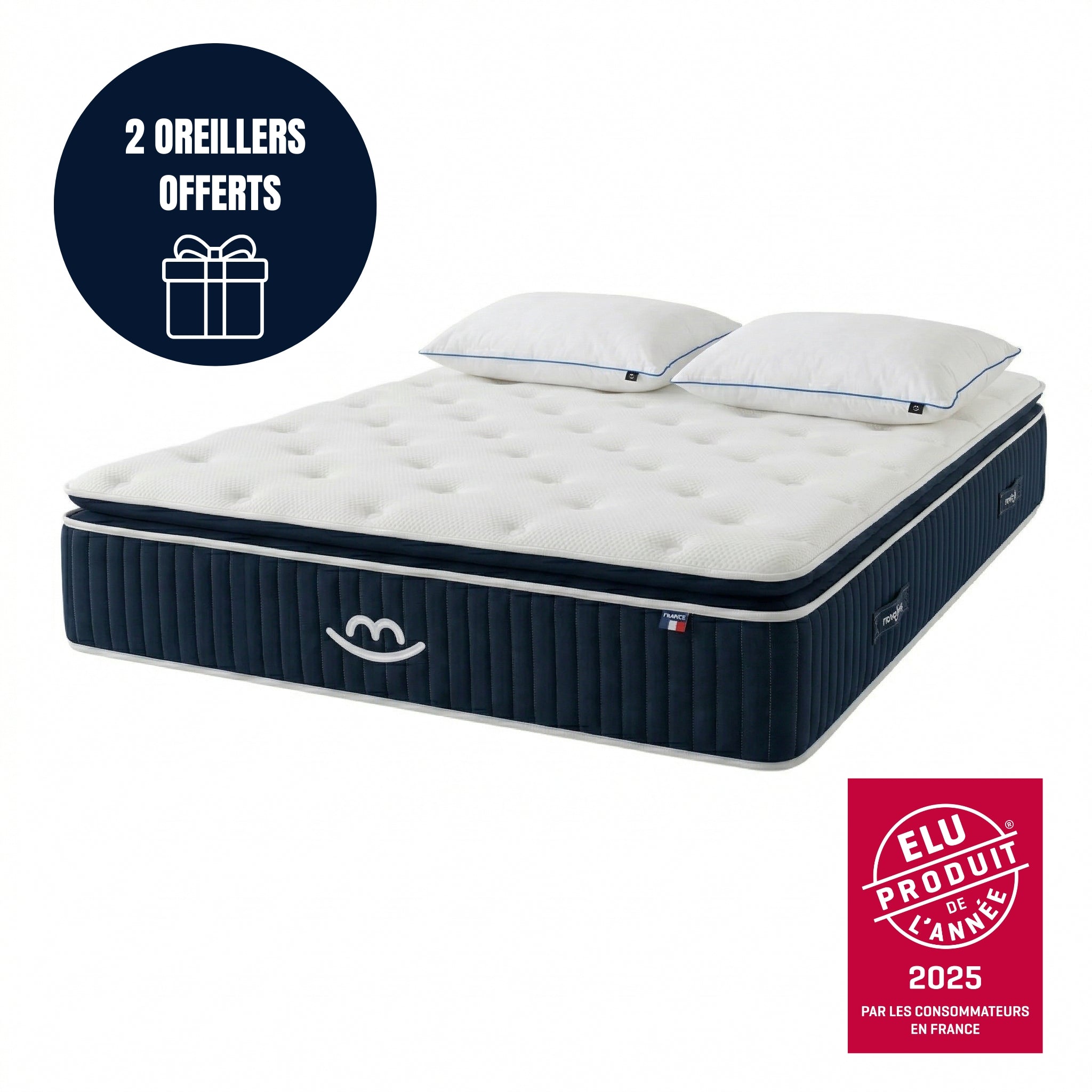 - Accueil : Enveloppant et moelleux, grâce à son surmatelas intégré