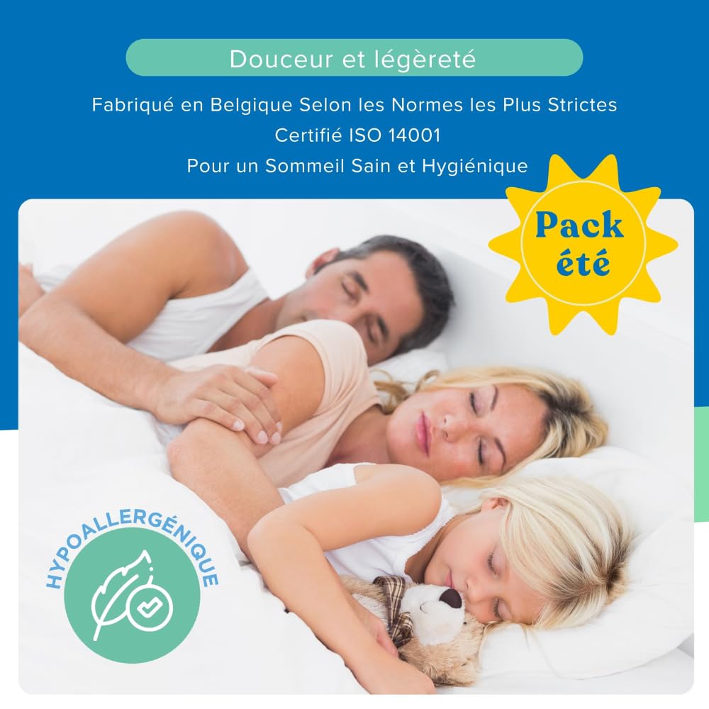 | Libellé | Pack Été Couette Blue Moon 220x240 Cm + 4 Oreillers 60x60 - 200g/m² - Confort Hypoallergénique - Fabriqué En Belgique |