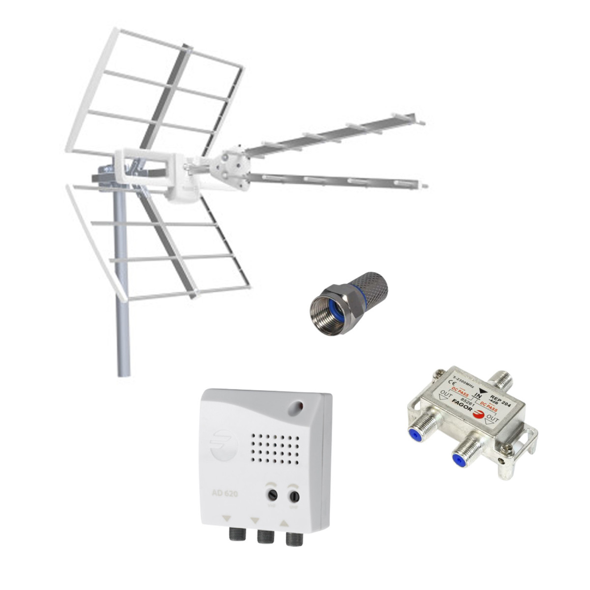 PACK FAGOR EVA 48 Antenne TV TNT LTE 5G Rateau + Amplificateur TNT Intérieur 2 Sorties + Répartiteur Ante