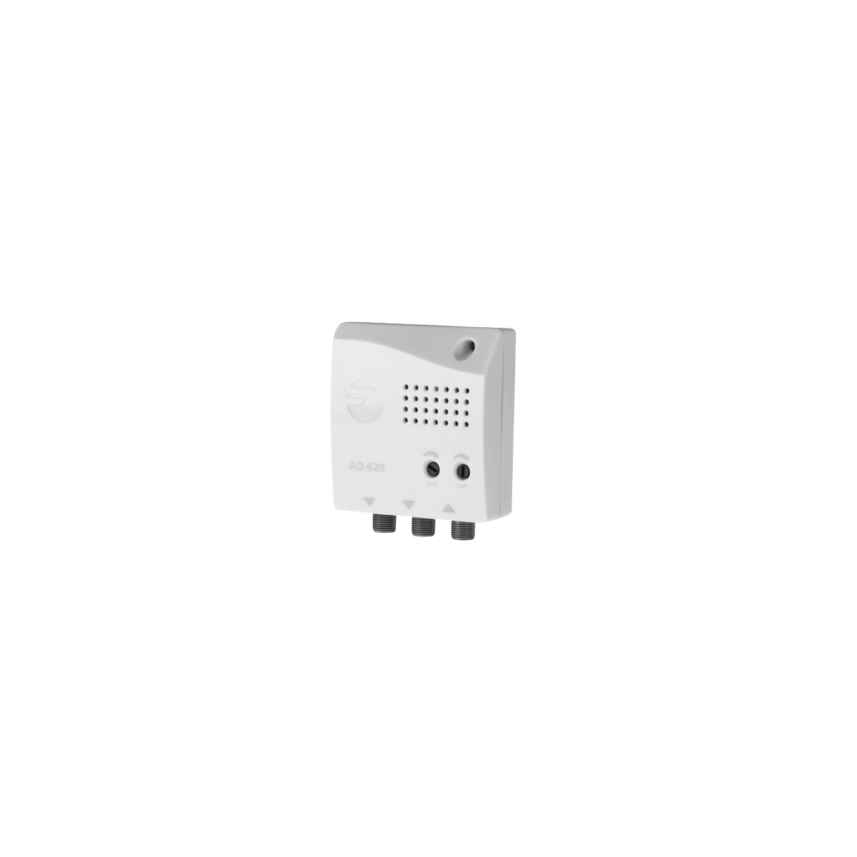 Amplificateur d'appartement. Une entrée VHF+UHF, deux sorties. Gain REGLABLES 20/22, 105dB de niveau sortie.