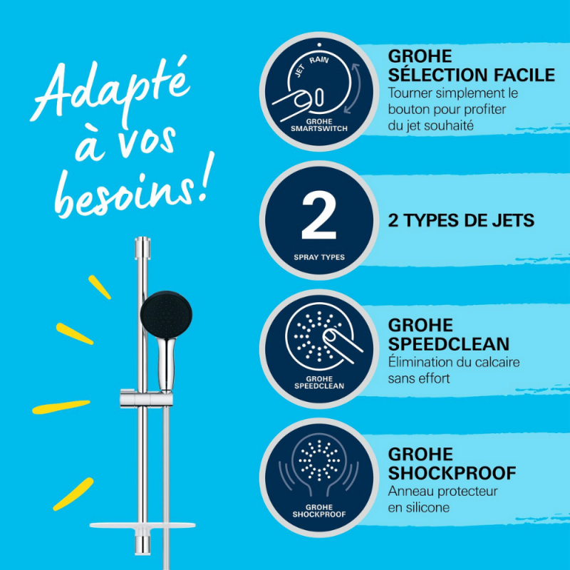 GROHE DreamSpray débit d'eau uniforme pour tous les types de jets