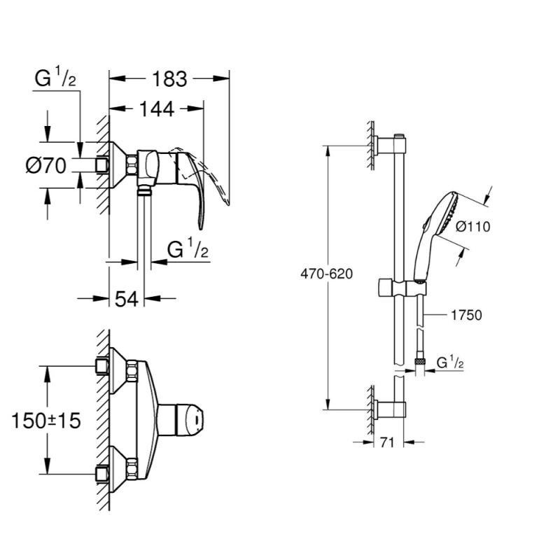 | Libellé | Pack GROHE mitigeur douche Eurosmart + ensemble de douche Vitalio Start |