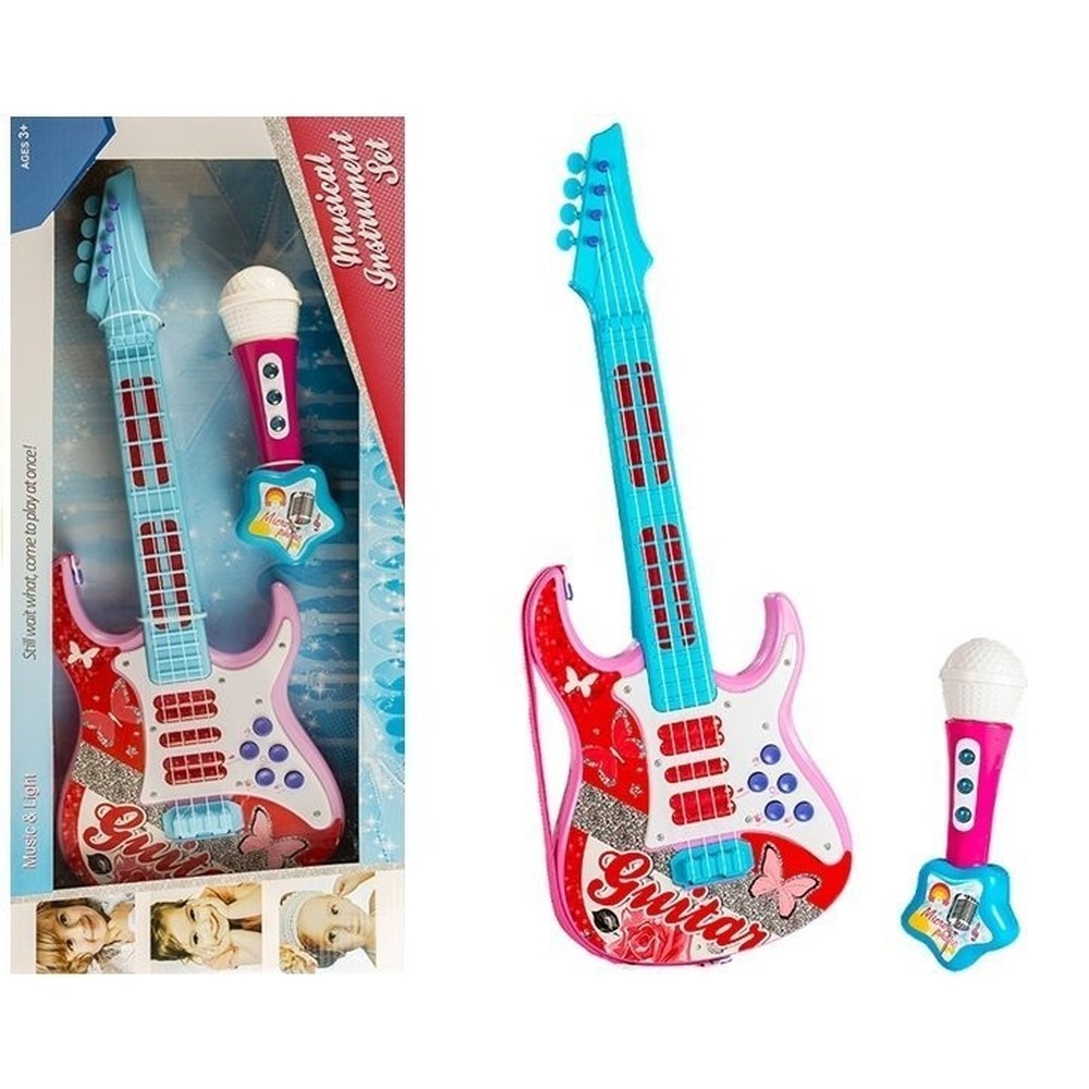 Notre pack guitare électrique est spécialement conçu pour les enfants qui veulent apprendre à jouer de la guitare ou simplement s'amuser avec leurs amis et leur famille.Le corps de la guitare est fait d'un matériau hautement résistant aux chocs et aux rayures.La guitare dispose également d'un système électronique intégré qui permet aux enfants d'enregistrer leurs propres chansons ou mélodies.La prise jack permet également aux enfants brancher leur propre amplificateur ou casque audio.Le micro est équipé d'une fonctionnalité lumineuse qui s'allume lorsque l'enfant chante dans le micro.Cela ajoute une touche magique à l'expérience musicale!