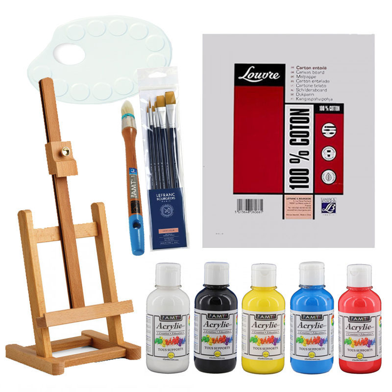 Pack - Je débute la peinture acrylique - Pinceaux - Toile - Peinture - Chevalet