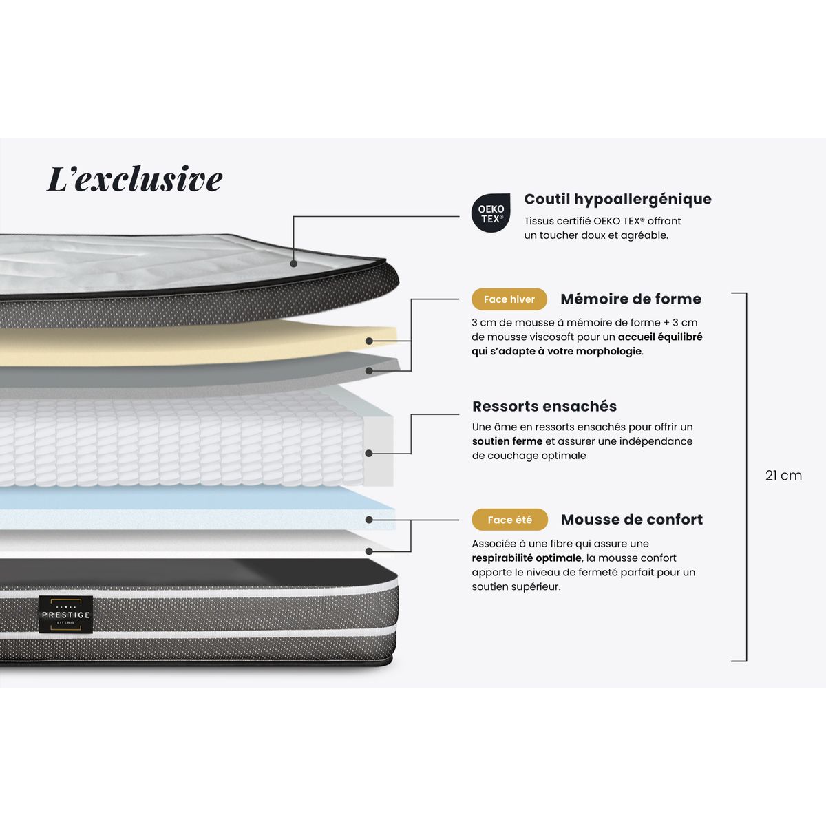 Pack Matelas Exclusive - Ressorts ensachés et mémoire de forme - Ep : 22cm - sommier Blanc déjà monté - a
