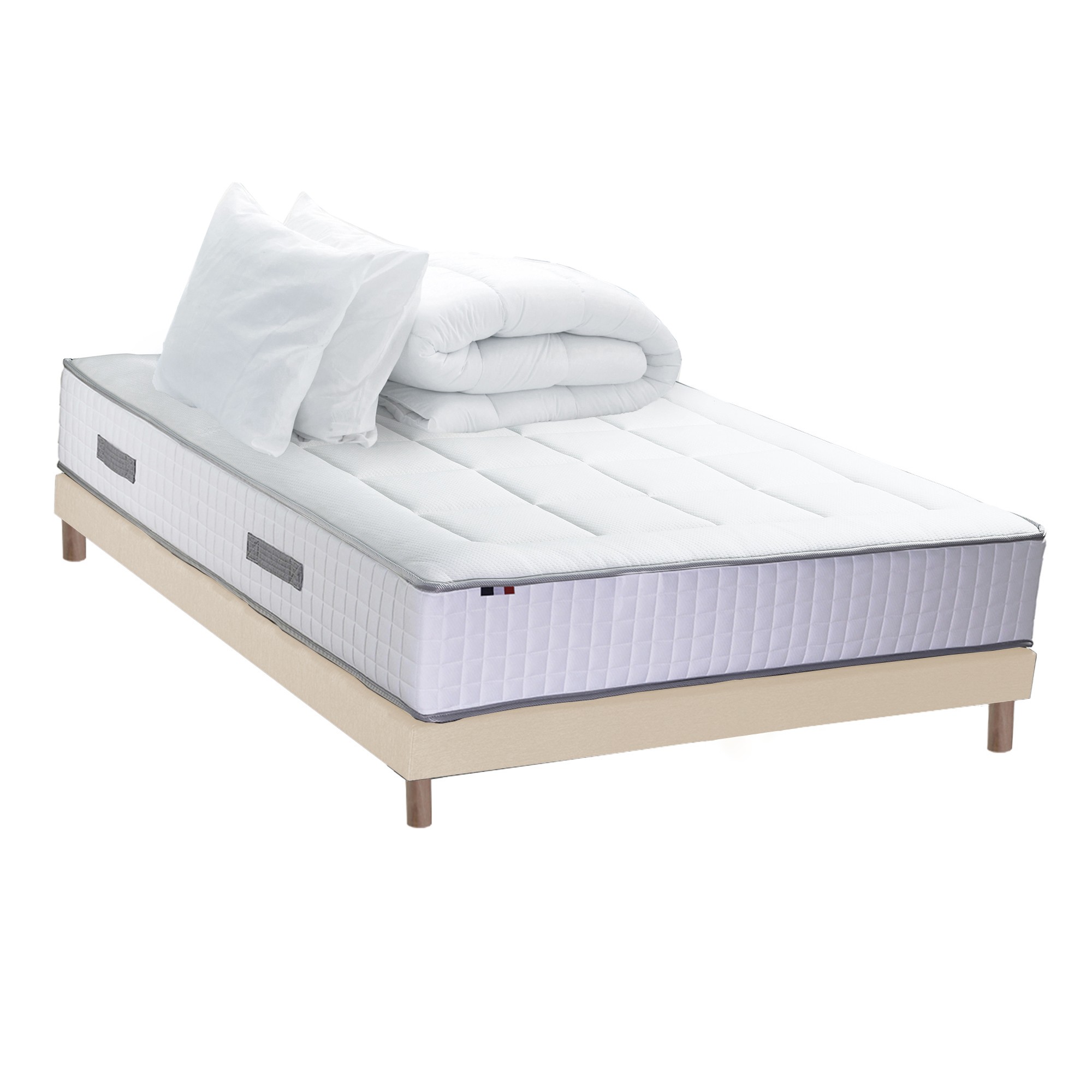 Pack matelas ressorts 7 zones PALACIO + sommier en kit beige + couette et oreillers Dimensions - 180 x 20