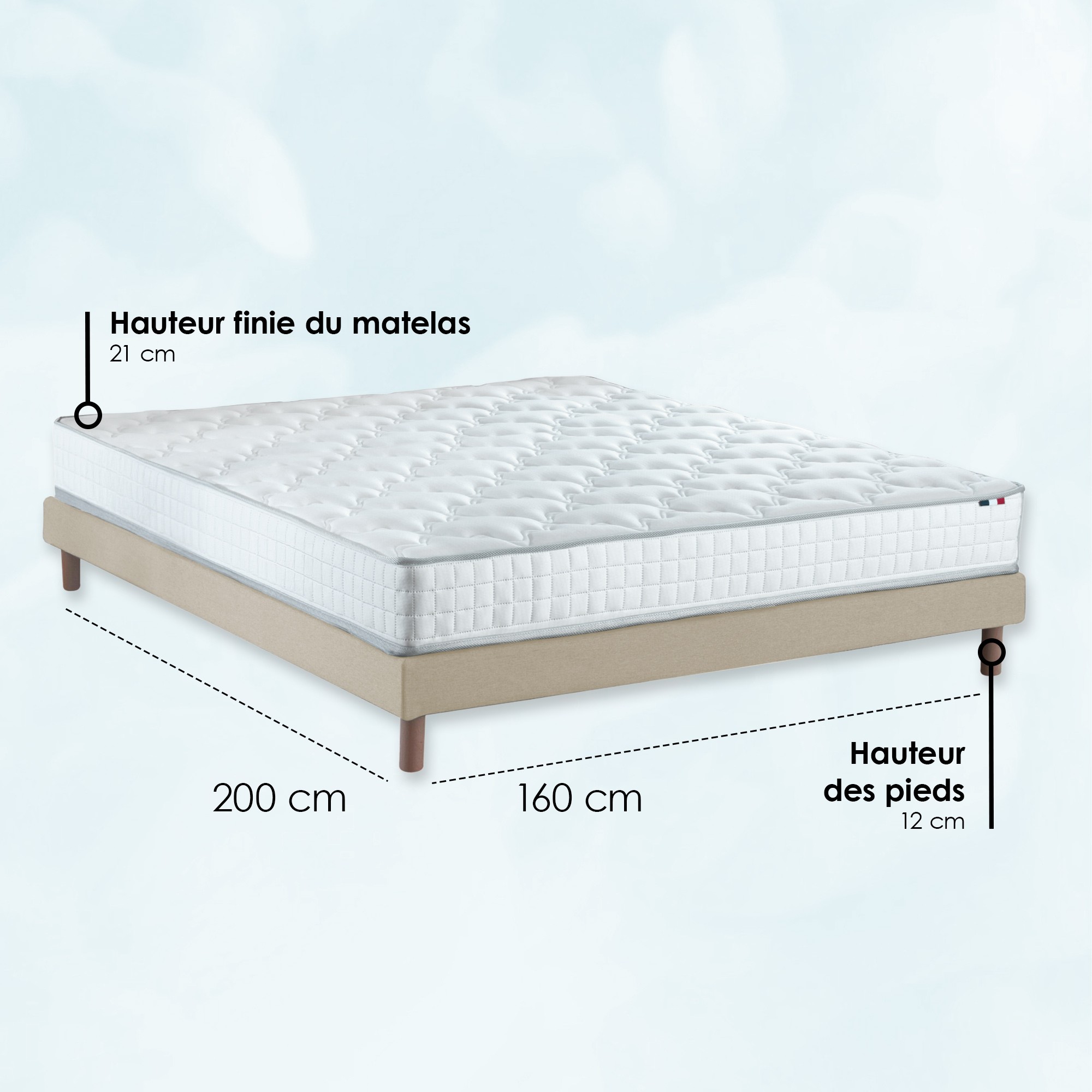 Pack matelas ressorts ASTRE + sommier kit beige + couette et oreillers Dimensions - 160 x 200 cm
