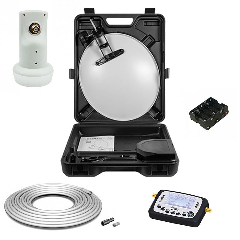 La valise de camping Megasat est constituée d'un plastique robuste et résistant aux chocs. La version standard est livrée avec un miroir satellite de 41 x 38 cm et diverses options de montage. Le pied à ventouse garantit une fixation solide et sûre du miroir sur toutes les surfaces lisses. Si le pied à ventouse ne peut pas être fixé, on peut utiliser le support sur pied ou sur mât pour le montage.