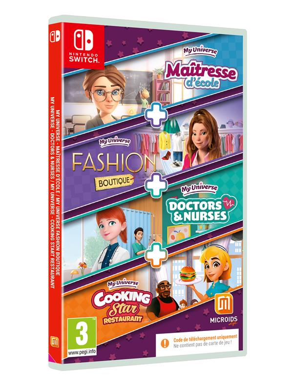 | Libellé | Pack My Universe : Maîtresse d'école - Fashion boutique - Doctors & Nurses - Cooking star (Code in a Box) (SWITCH) |