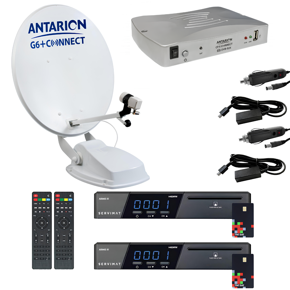 Pack Parabole Satellite Automatique TWIN 65cm Camping Car + 2x Récepteur TNTSAT HD Astra