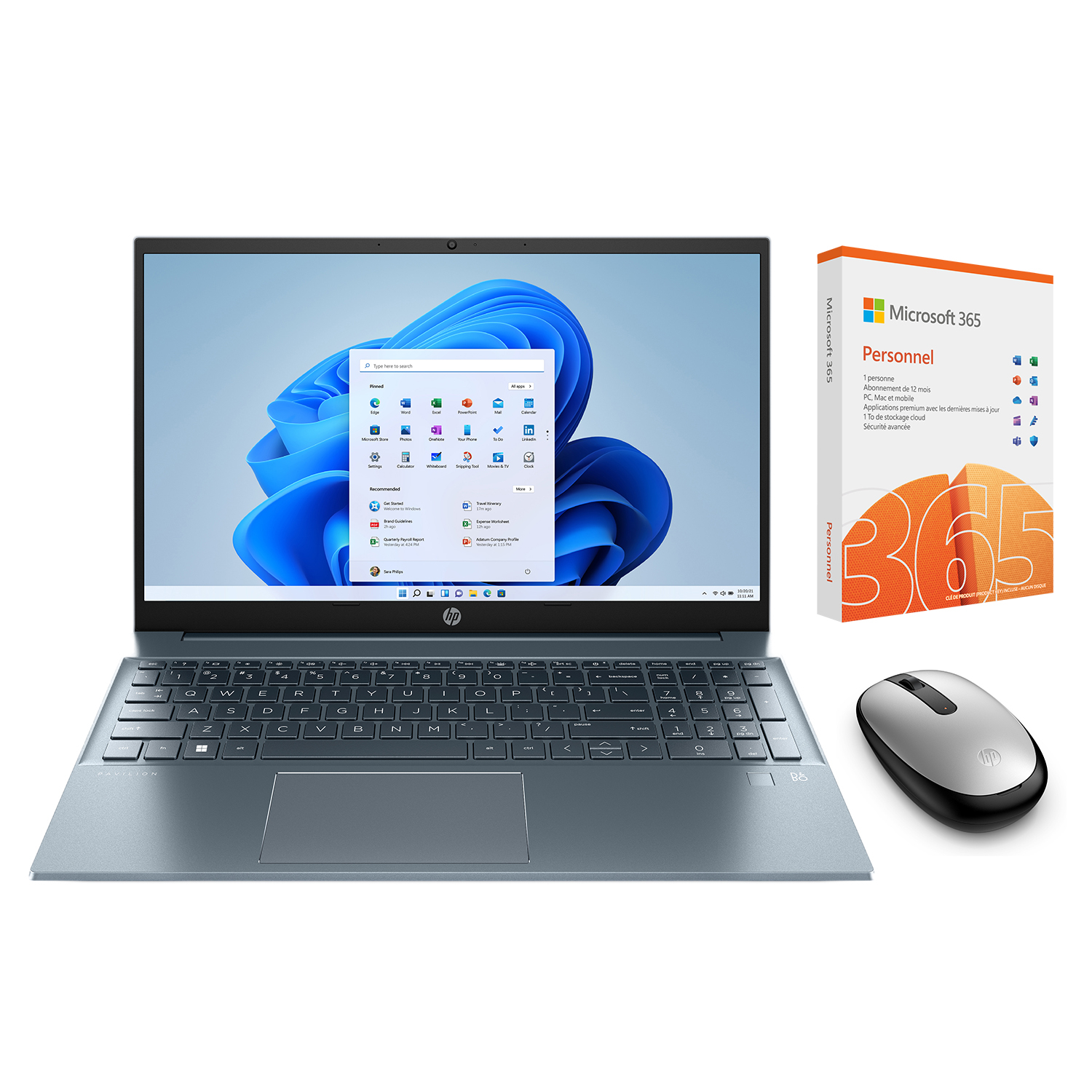 La sophistication au travail. La satisfaction avant tout. Le pack Pavilion offre davantage de performances, pour vous permettre d’en faire plus où que vous alliez. Profitez de divertissements époustouflants grâce au PC portable Pavilion 15-eh1026nf, à la souris Bluetooth et à l’abonnement Microsoft 365 Personnel 1 an. Processeurs pour ordinateurs portables AMD Ryzen™ série 5000 U Si vous avez l’habitude de jongler entre les conférences virtuelles, la navigation Web, les tableurs complexes et les diaporamas élaborés, le processeur pour ordinateurs portables AMD Ryzen™ série 5000 est fait pour vous. Écran FHD IPS Profitez d’images extrêmement nettes, quel que soit l’angle de vision. Avec un grand angle de vision de 178° et une résolution dynamique de 1 920 x 1 080, vous bénéficierez toujours d’un affichage remarquable de votre contenu favori. Stockage sur disque SSD PCIe Démarrez votre ordinateur en quelques secondes avec jusqu’à 512 Go de stockage ultra-rapide SSD PCIe. DDR4 RAM Conçue pour s’exécuter de manière plus efficace et plus fiable à des vitesses élevées, la mémoire DDR4 est l’avenir de la mémoire RAM. Avec sa bande passante plus élevée, elle améliore les performances aussi bien pour le multitâche que pour les jeux vidéo. Écran FHD IPS Profitez d’images extrêmement nettes, quel que soit l’angle de vision. Avec un grand angle de vision de 178° et une résolution dynamique de 1 920 x 1 080, vous bénéficierez toujours d’un affichage remarquable de votre contenu favori. Lecteur d’empreintes digitales Connectez-vous facilement à votre périphérique dans tous les modes, juste au toucher de votre doigt. La technologie brevetée d’empreintes digitales 3D garantit un accès et des paiements en ligne sécurisés. Clavier rétroéclairé avec pavé numérique intégré Poursuivez vos activités, même dans les pièces faiblement éclairées ou sur les vols de nuit. Avec un clavier rétroéclairé et un pavé numérique intégré, vous pouvez réaliser vos saisies confortablement dans plusieurs environnements. HP Imagepad avec prise en charge des gestes multipoints Ce véritable pavé tactile multipoint reconnaît simultanément quatre doigts et vous permet de faire défiler, d’agrandir et de naviguer d’un simple effleurement. Une expérience audio puissante Grâce aux deux haut-parleurs HP, à la technologie HP Audio Boost et à un son personnalisé par les experts de B&O, vous pouvez profiter d'une expérience audio riche et authentique. Laissez le son vous transporter. Conception optimisée en métal Une conception épurée et de haute qualité en métal rend cet ordinateur plus fin et plus léger tout en garantissant une solidité durable, grâce à une technologie avancée de mise en forme 3D du métal. HP Imagepad avec prise en charge des gestes multipoints. Microsoft 365 Personnel Microsoft 365 Personnel comprend 1 To de stockage cloud, des fonctionnalités de sécurité avancées et des applications innovantes, le tout dans la même application. · Pour une seule personne · Utilisez jusqu’à cinq appareils simultanément · Fonctionne sur PC, Mac, iPhone, iPad, tablettes et téléphones Android · 1 To (1 000 Go) de stockage cloud · Word, Excel, PowerPoint et OneNote avec un accès hors ligne et des fonctionnalités premium · Sécurité renforcée Microsoft Defender* pour vos données personnelles et vos appareils · Protection contre les ransomware OneDrive pour vos fichiers et vos photos · Messagerie sécurisée Outlook sans publicité · Assistance avancée en orthographe, grammaire et écriture avec le Rédacteur Microsoft · Éditeur vidéo Clipchamp* avec filtres et effets premium · Modèles premium et personnalisables · Bibliothèque de contenu élargie de photos, d’icônes, de polices, de vidéos et d’audio de haute qualité Restez connecté avec élégance Cliquez sans compter avec sa connexion stable et son suivi rapide. Mettez la main sur cette souris sans fil dont l’élégance n’a d’égal que le nombre de fonctionnalités proposées.