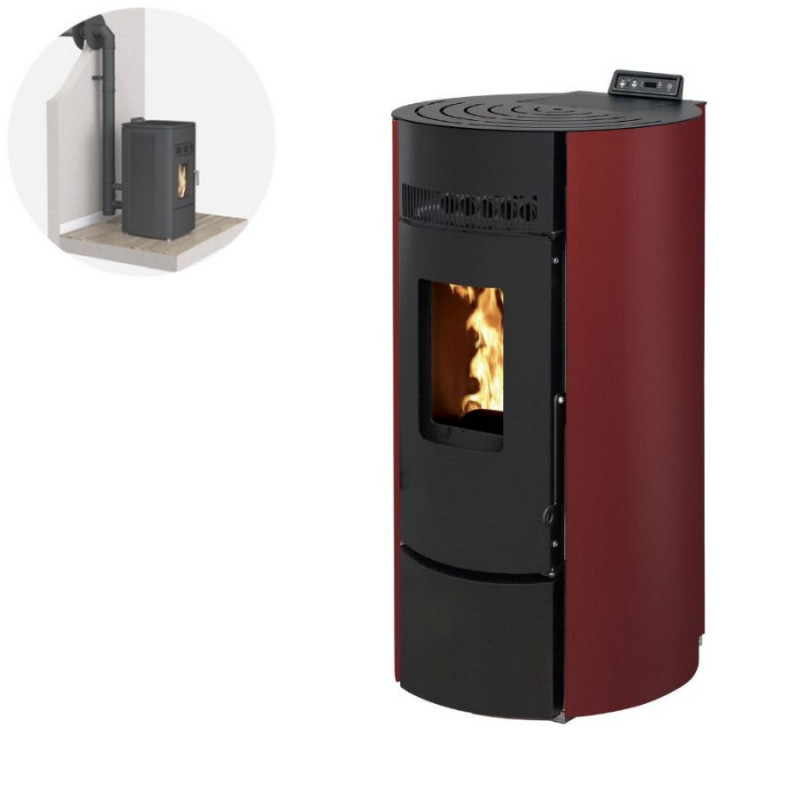 Pack Poêle à granules LEANDRO 9 Etanche + Kit Conduit Ventouse (sortie façade) - Bordeaux