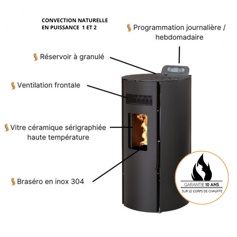 - Il bénéficie d'une autonomie de 20h grâce à son réservoir à granulés de 15kg