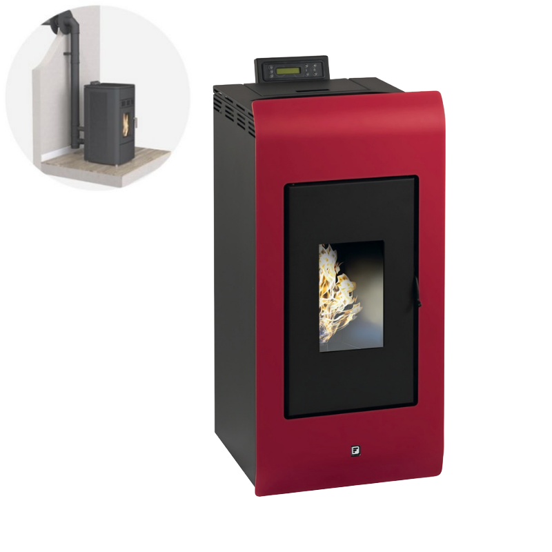 Pack Poêle à granulés ZARA 9 Etanche + Kit Conduit Ventouse (sortie façade) - Bordeaux
