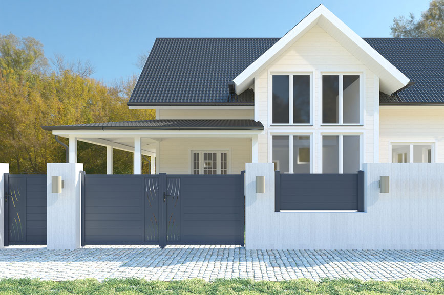 Le portail battant VELETA au design graphique apporte modernité et élégance à votre entrée