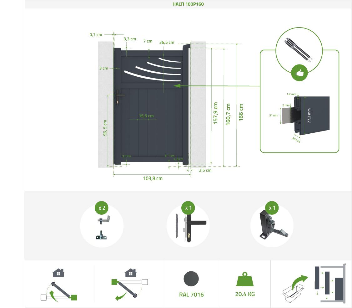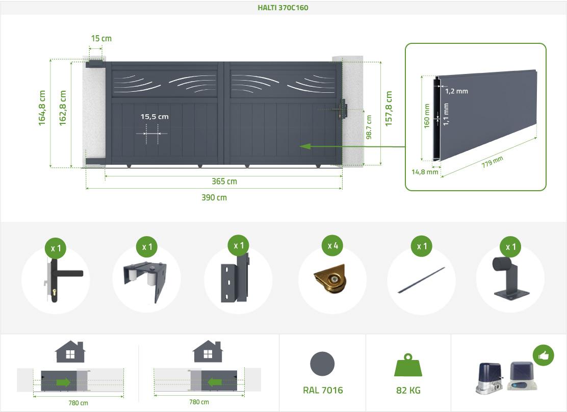 | Libellé | Pack portail coulissant 3,7mHALTI 370C160 + Portillon HALTI 100P160 Gris |