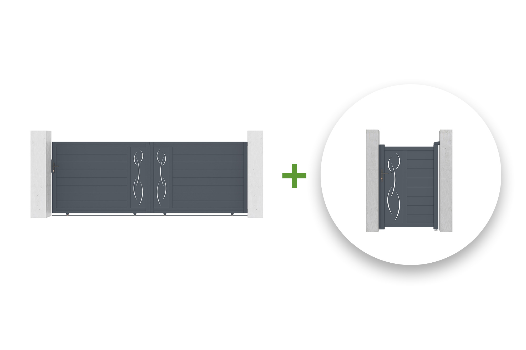 Pack portail coulissant 4m LIFE 400C140 + Portillon LIFE 100P140 Gris