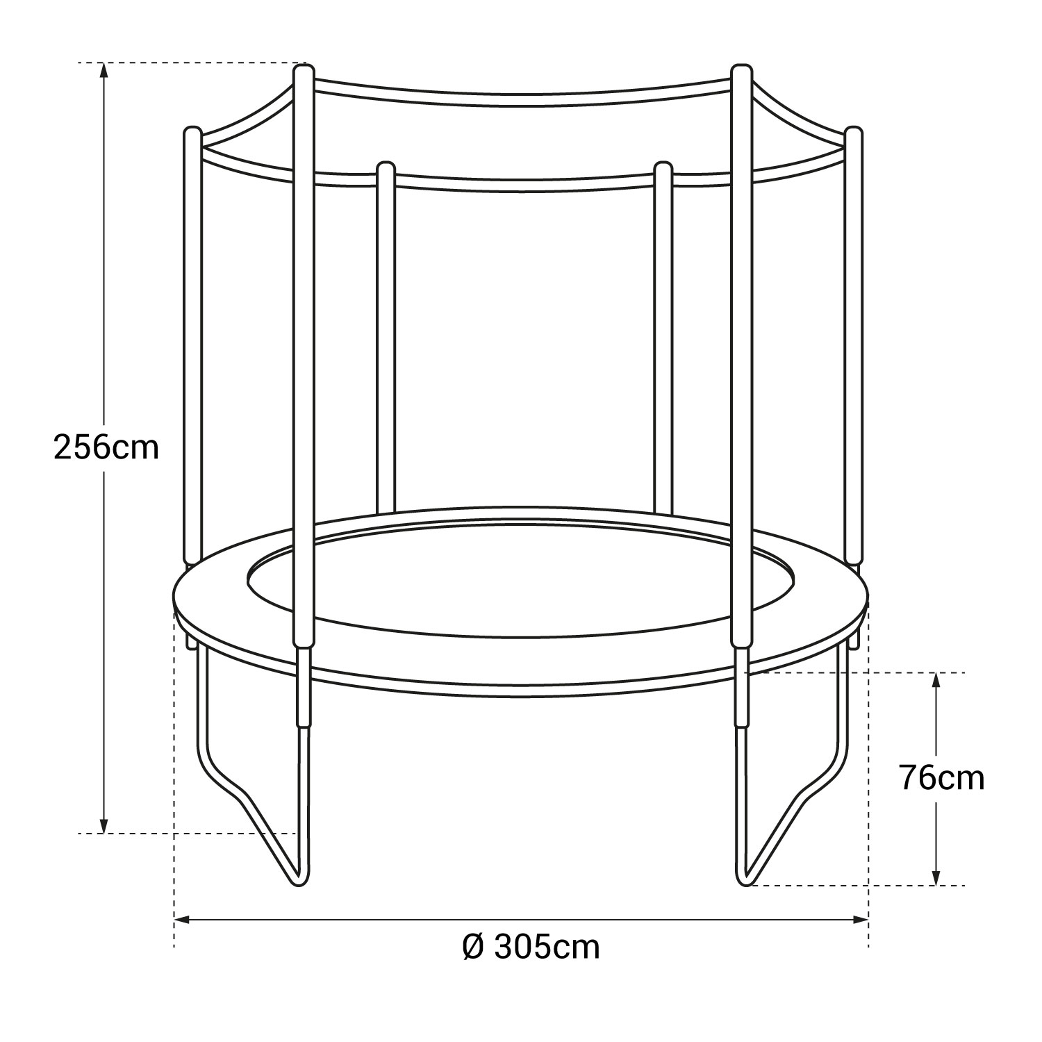 - Trampoline : Ø 305 × H au sol 76 × H avec filet 256cm