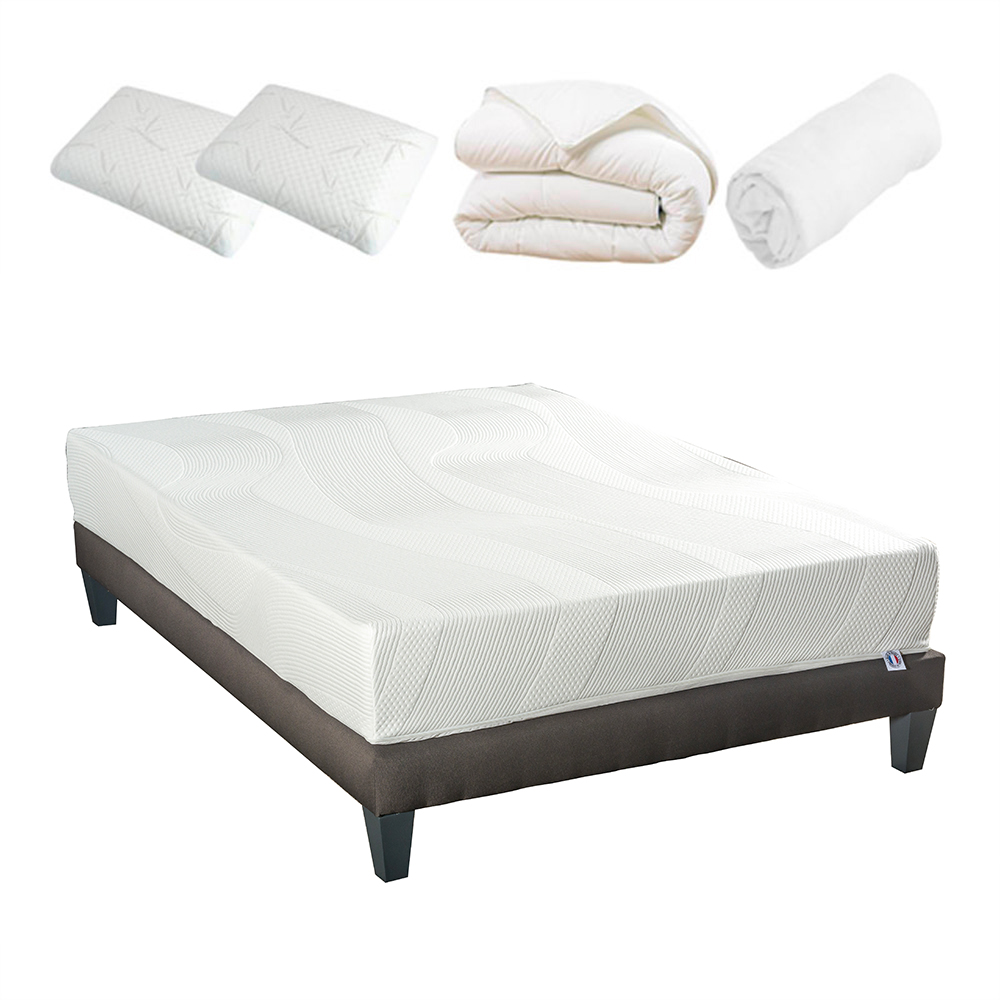 Pack prêt à dormir Matelas Mémoire de forme + Sommier + Accessoires PARIS