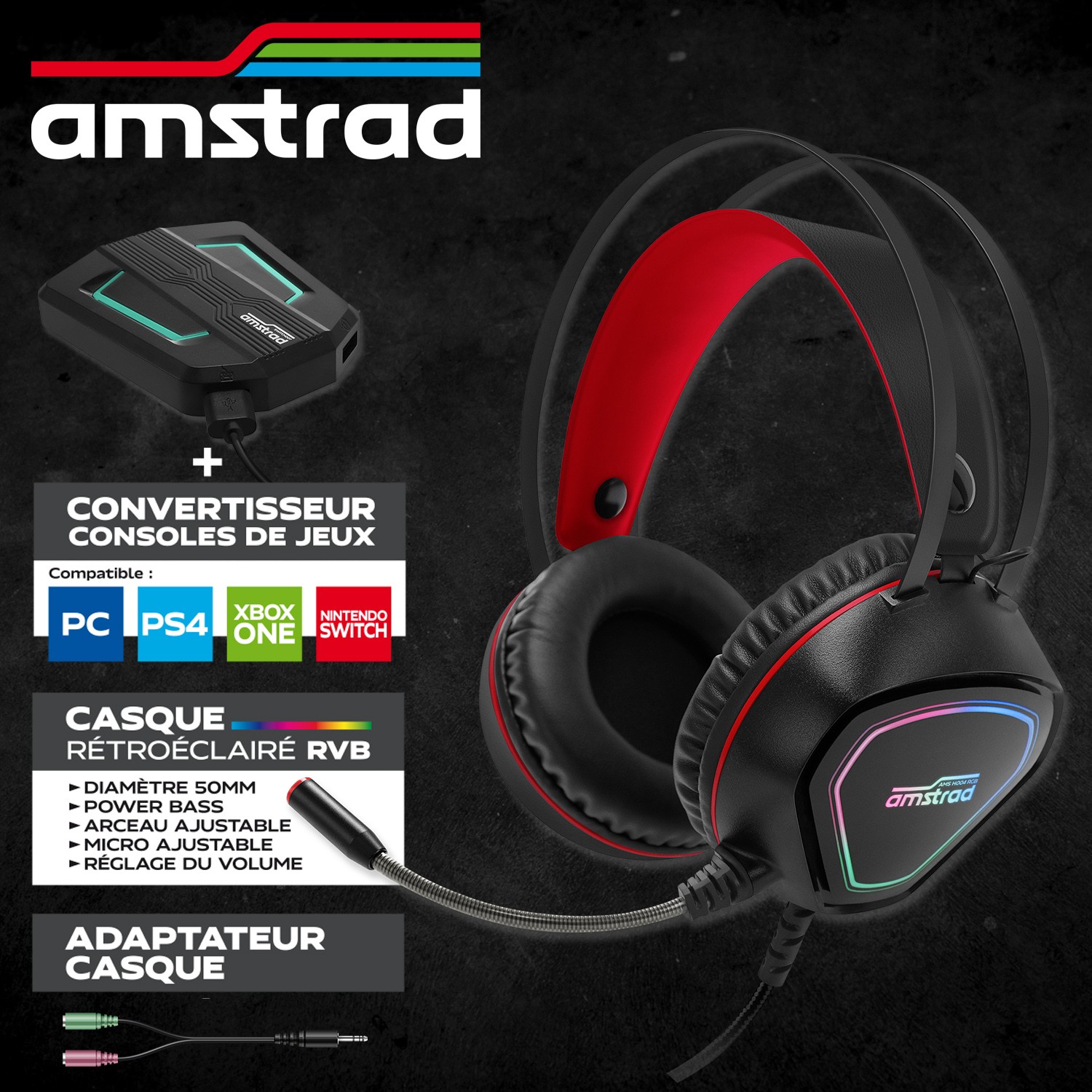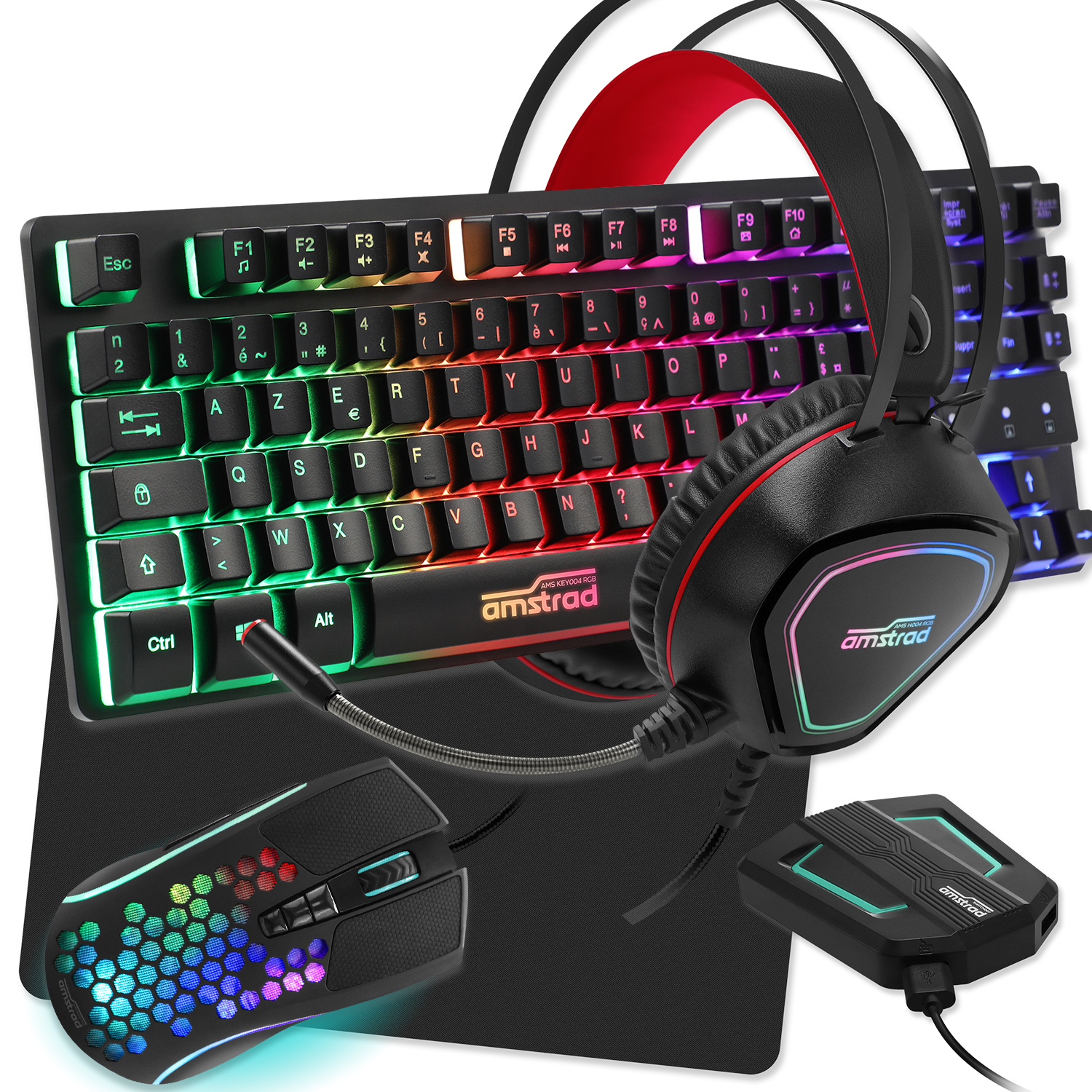 | Libellé | Pack Pro Gamer AMSTRAD LEGENDS 6 pièces: Clavier, Souris, tapis, casque, convertisseur compatible PC/PS4/Xbox one/Switch/PC |