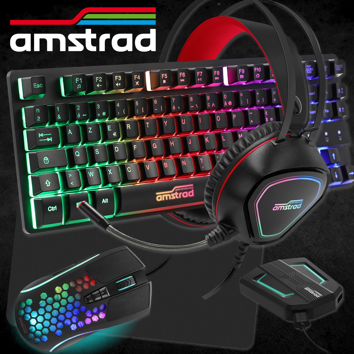 Pack Pro Gamer AMSTRAD LEGENDS 6 pièces: Clavier, Souris, tapis, casque, convertisseur compatible PC/PS4/