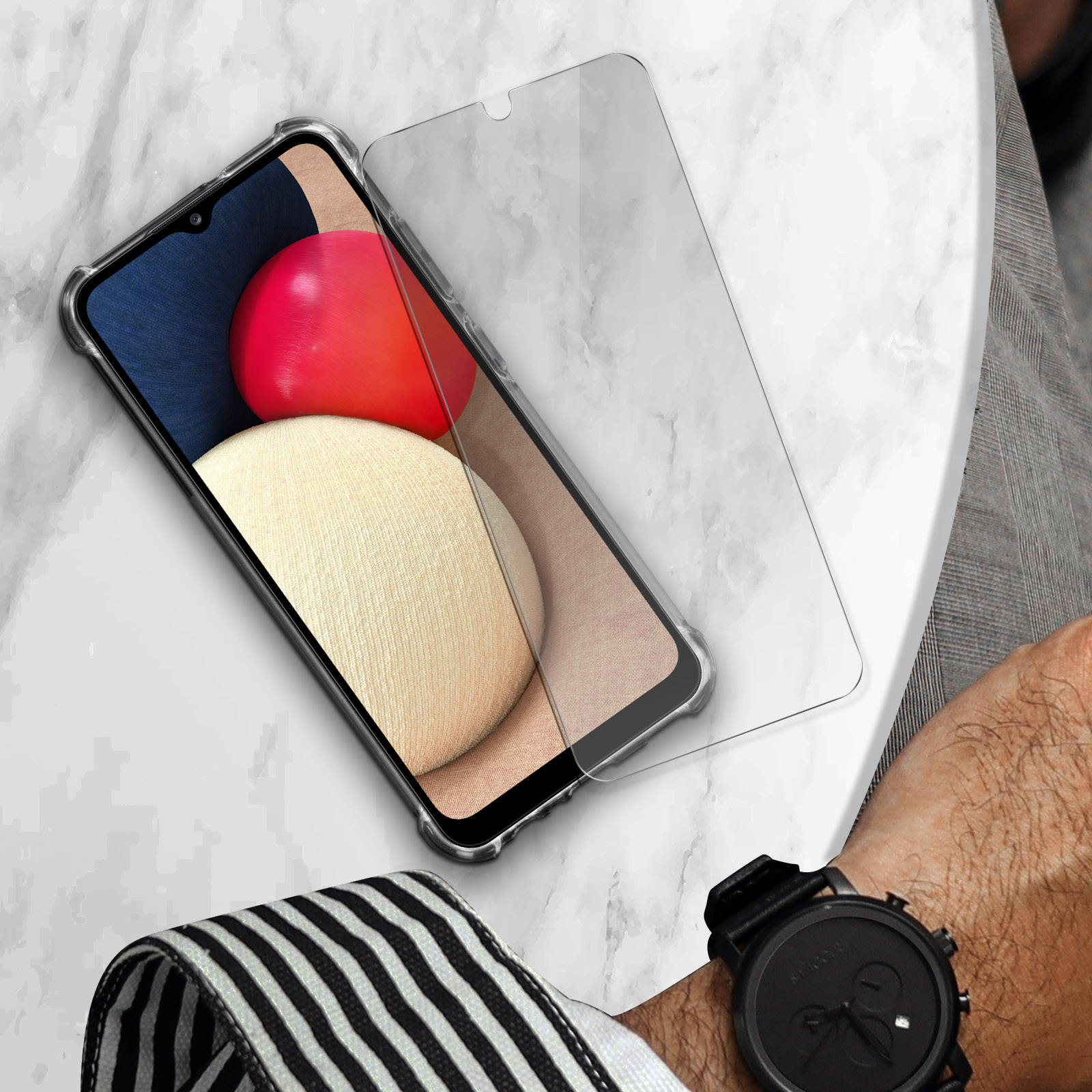 Pack Protection Samsung Galaxy A02s Coque Souple et Verre Trempé Transparent