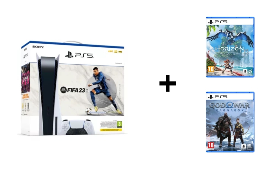 Pack PS5 Standard FIFA 23 + God of War : Ragnarök (PS5) + Horizon Forbidden West (PS5)