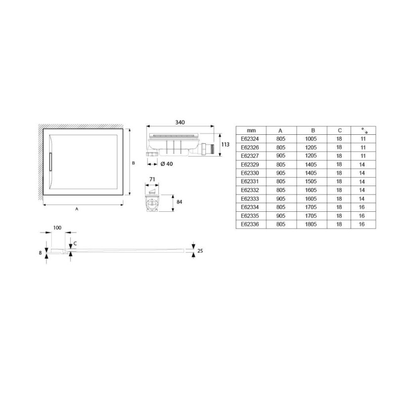 Épaisseur : avec seulement 2.5 cm d'épaisseur cela fait de lui un receveur de douche extra-plat ! Ce receveur de douche est idéal pour une douche à l'Italienne haut de gamme.