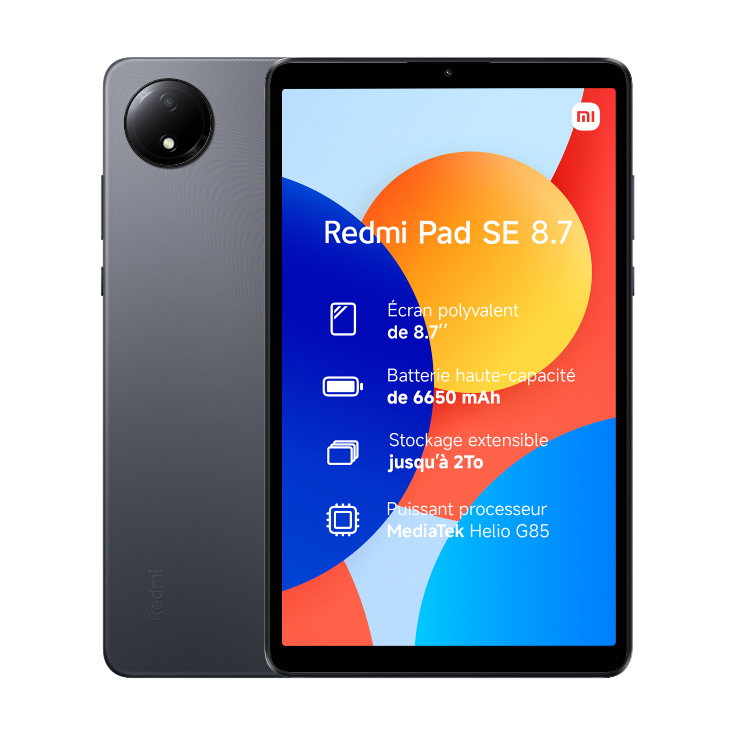 Ecran polyvalent de 8,7" Batterie haute capacité de 6650 mAh Stockage extensible jusqu'à 2 To Puissant processeur MediaTek Helio G85.