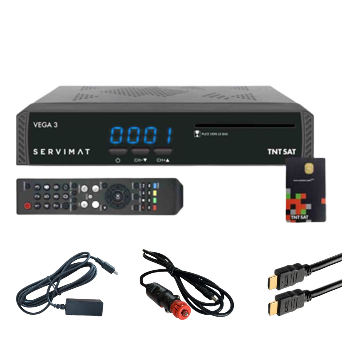 Pack SERVIMAT Récepteur satellite Full HD + Carte TNTSAT V6 + Câble HDMI + Câble 12V + Déport IR