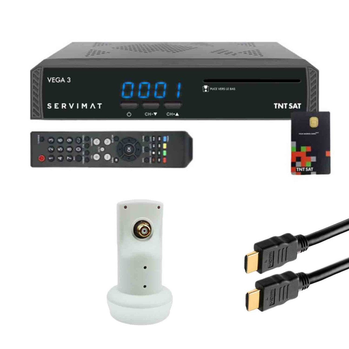 | Libellé | Pack SERVIMAT Récepteur satellite Full HD + Carte TNTSAT V6 + Câble HDMI + LNB Single HDSAT |