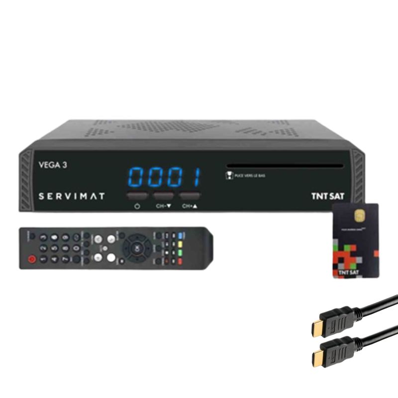 Pack SERVIMAT Récepteur TV satellite Full HD + Carte d'accès TNTSAT V6 + Câble HDMI