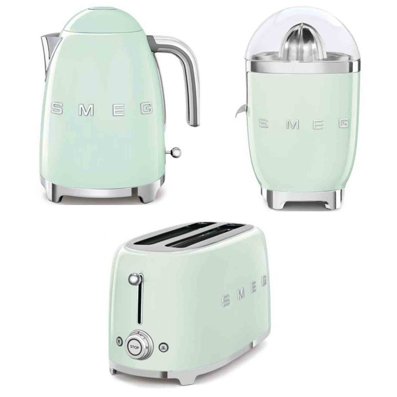 Pack SMEG Bouilloire 1.7L 7 Tasses + Grille-Pain 1500W 4 Tranches + Presse Agrumes 70W Vert D'eau