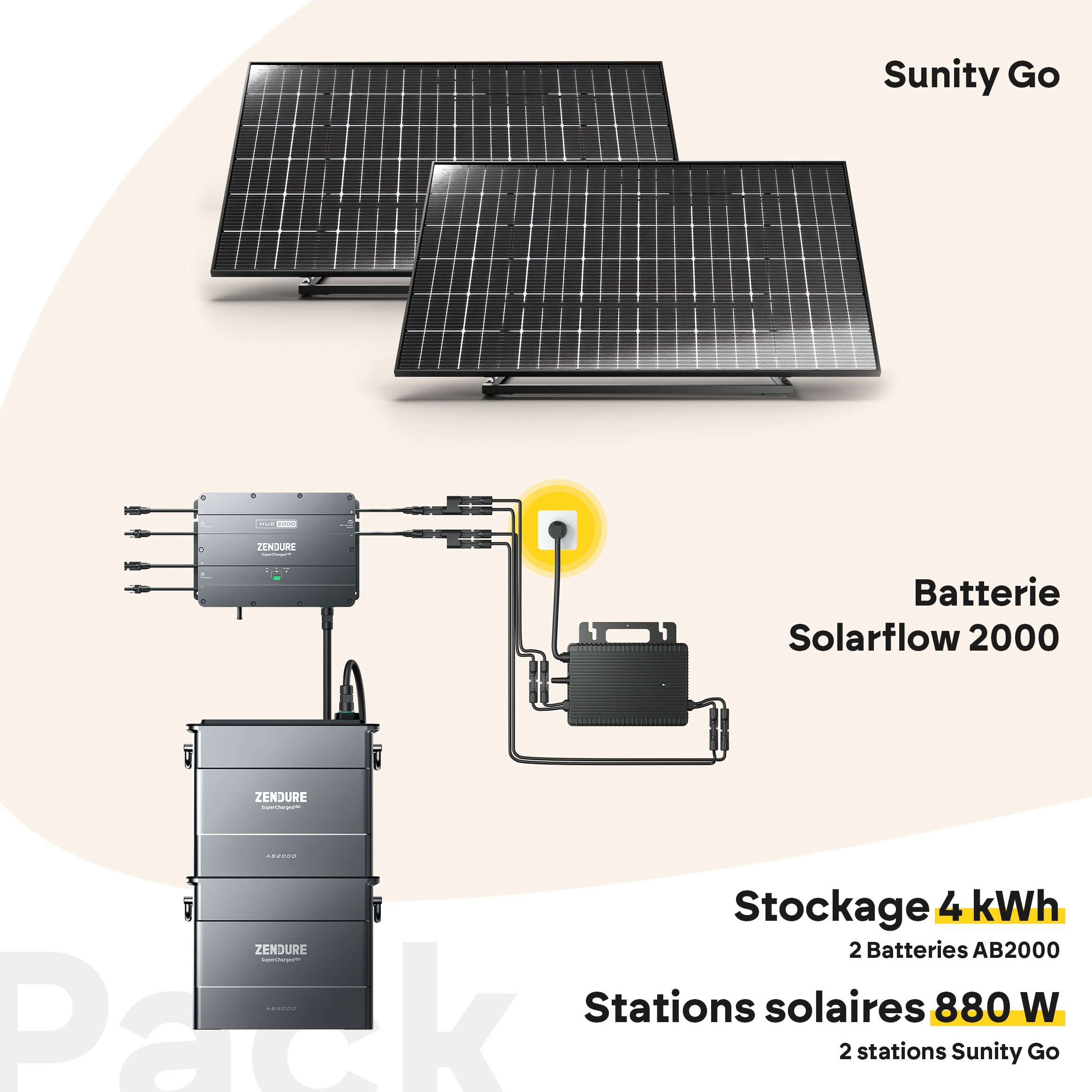 | Libellé | Pack Sunity Go 880W Plug & Play + 2 Batteries Zendure Solarflow 2000 |