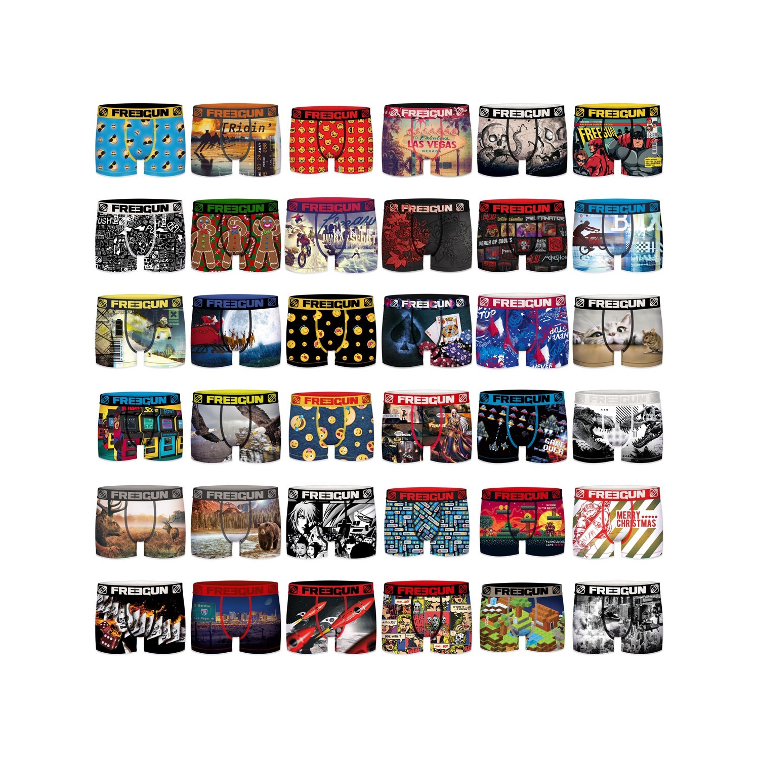 Pack surprise de 3 boxers pour Garçon de la marque Freegun. Freegun te propose ce pack surprise de 3 boxers pour garçon. Si tu aimes être surpris, ce lot est parfait pour toi. Freegun choisira pour toi des boxers surprises qui te raviront à coup sûr ! *Sélection de boxers aléatoire parmi les stocks disponibles, photos non contractuelles Modèle : Aléatoire