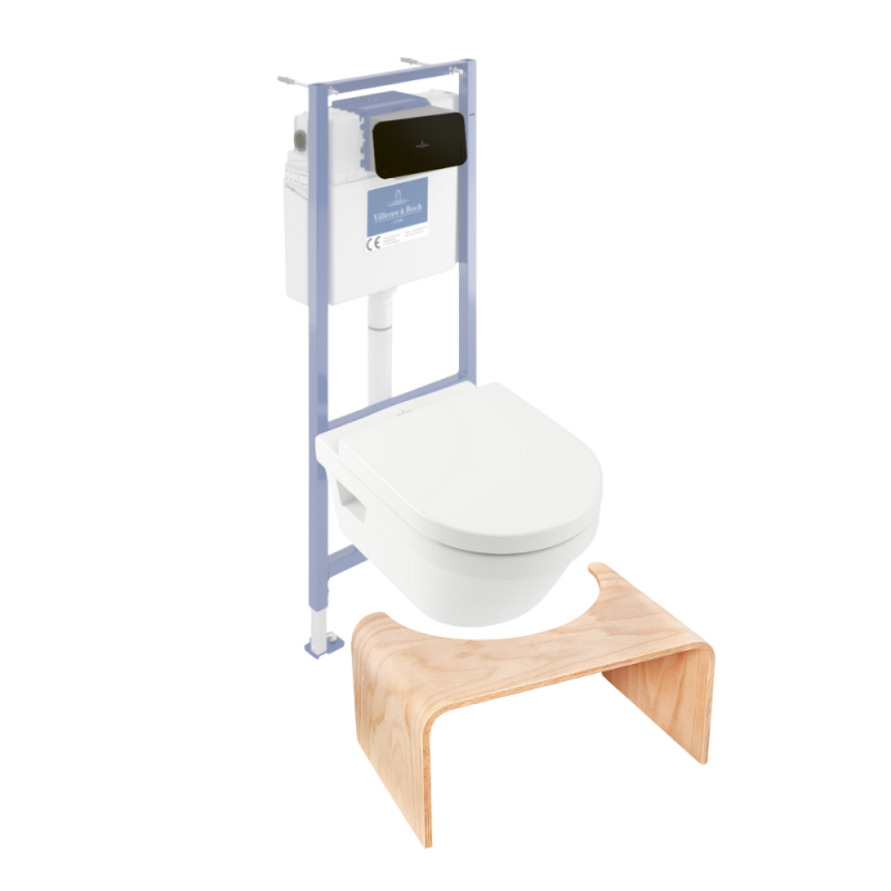 Libellé Pack WC sans bride VILLEROY ET BOCH Architectura abattant + bâti-support sol et mur + plaque noir mat + Tabouret bois